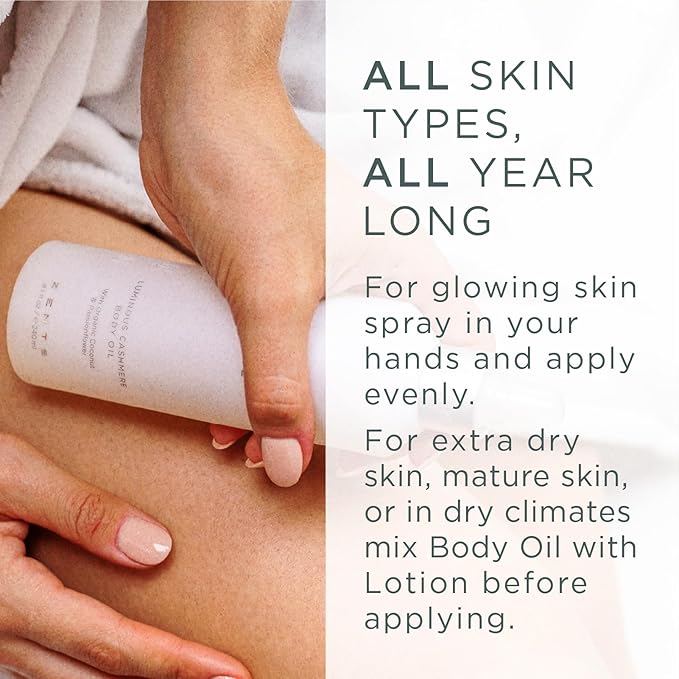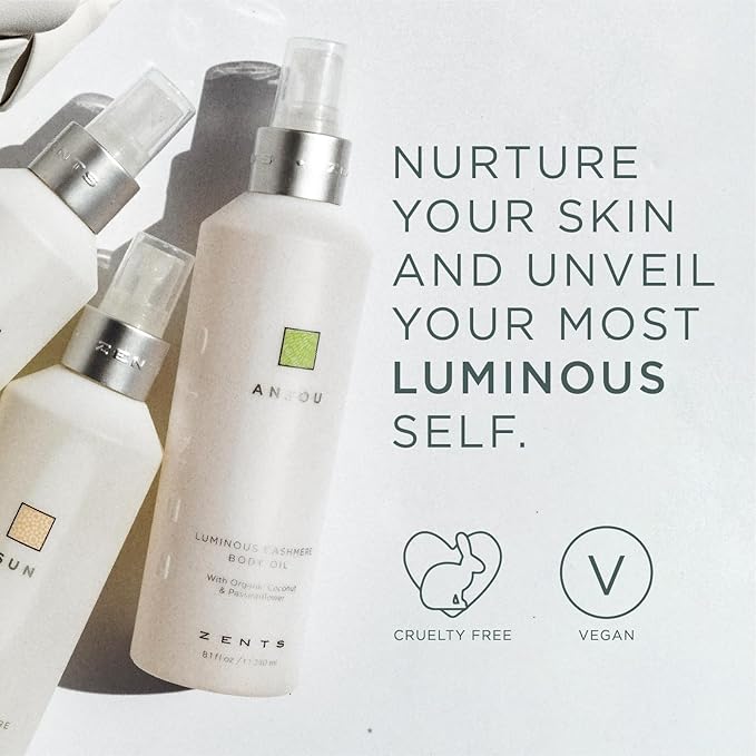 Zents Luminous Cashmere Body Oil (Water Fragrance) | Moisturizing Body Oil with Vitamin E & Organic Coconut Oil | Softens & Smooths Skin | 8 fl oz