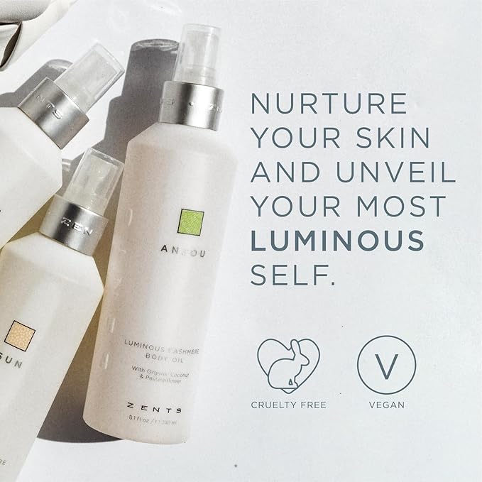 Zents Luminous Cashmere Body Oil (Fresh Fragrance) | Moisturizing Body Oil with Vitamin E & Organic Coconut Oil | Softens & Smooths Skin | 8 fl oz