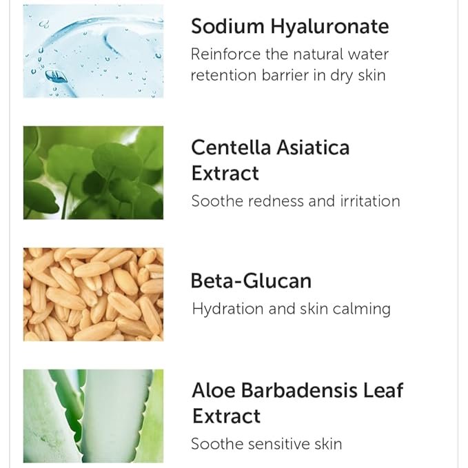 - CENTELLA ASIATICA EXTRACT: Infused with Centella Asiatica Extract for added soothing benefits, promoting a calm and healthy complexion.