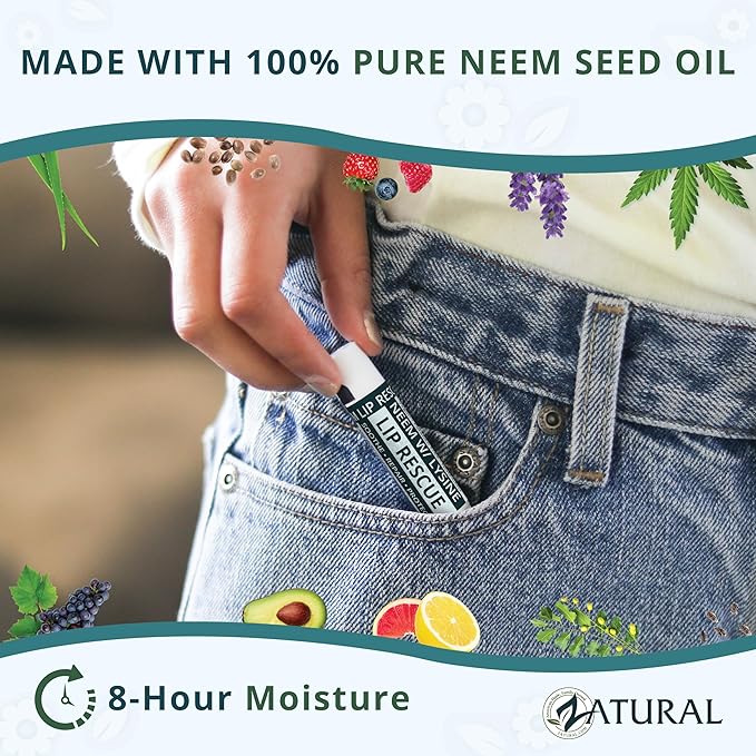 - Zatural specially formulated Lip Rescue is created using Organic Neem with Essential Oil of Melissa to not only help your chapped lips but to also help you feel more pleasant and calm.