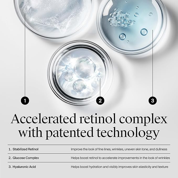 - This facial moisturizer with an accelerated retinol complex visibly renews the look of skin texture, evens tone, and smooths look of fine lines. Suitable for daily use, this face lotion is formulated without parabens, mineral oil, & dyes