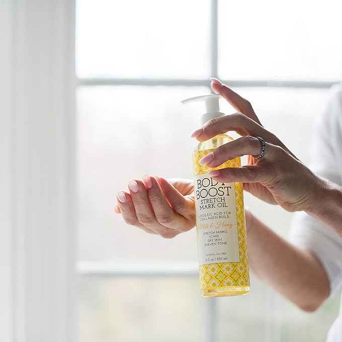 Body Boost Milk & Honey Stretch Mark Oil 8oz- For Stretch Marks and Scars- Pregnancy and Nursing Safe