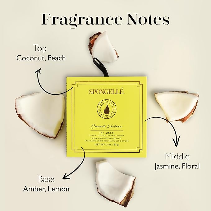 Spongelle Coconut Verbena Wild Flower Buffer Body Scrubber with Box | Bath & Shower Loofah for Women | Exfoliator with Body Wash Infused | 14+ uses