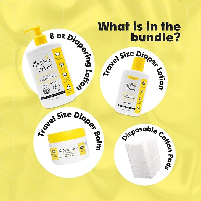 - Baby Care Kit Anytime and Anywhere: La Petite Creme introduces a comprehensive baby skin care solution, a must-have in your collection of newborn essentials. Ideal as a baby shower gift, the set includes our organic diapering lotion (8 oz), a travel-size lotion (2 oz), a travel-size diaper balm (1 oz), and 50 disposable cotton pads.