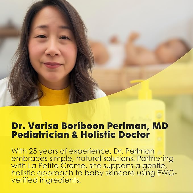 - Pediatrician-Endorsed Skincare with Holistic Touch: Recommended by Dr. Varisa Boriboon Perlman, a board-certified pediatrician with 25 years of experience, La Petite Creme is backed by a medical professional who believes in a βless is moreβ philosophy for baby skincare. Her holistic approach aligns with our commitment to minimalist, clean, gentle products that nurture delicate skinβproving that safe and simple is always the best care.