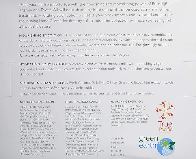 Pure Fiji Nourishing Trio, Ideal Spa Bath Gift Set for Women - Travel Kit - Includes Exotic Body Oil , Hydrating Body Lotion For Women and Nourishing Hand Cream, Starfruit Scent