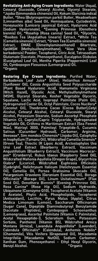 - Key Ingredients: Natural & Organic ingredients, including aloe, DMAE, MSM, hyaluronic acid, activated charcoal, pumice, jojoba beads and green tea.