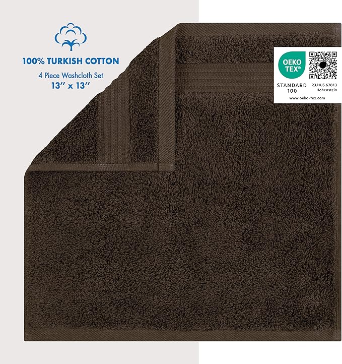Cotton Paradise 100% Cotton Turkish Washcloth Set for Bathroom, 4 Piece Soft Absorbent Small Hand Face Towels Wash Rags, Brown