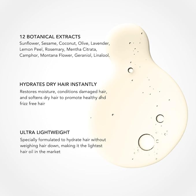 - Hydrating Hair Oil:Meet BLUMAAN's best selling hair oil, your go-to solution for lightweight hair oil on the go. Made with 12 all-natural oils and botanical extracts. Hair oil made for dry damaged hair and growth. Nurtures, revitalizes, and kickstarts growth for dry hair, transforming every strand with utmost care. Ideal for travel with its convenient hair oil travel size.
