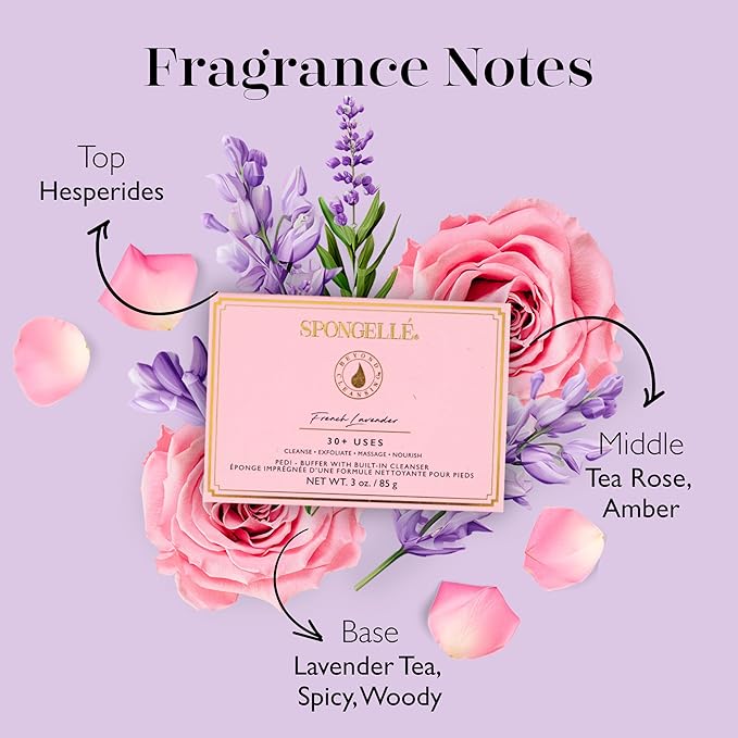 - Revitalize your feet with the Spongelle French Lavender Pedi Buffer, combining a foot scrubber and soap-infused sponge for an indulgent pedicure experience at home.