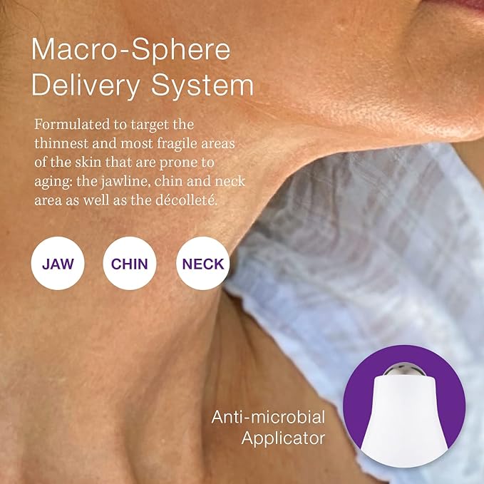 - THE MOST POWERFUL NECK LIFTING - This serum sculpts, lifts, firms, and defines the entire neck, chin & jawline thanks to a patented breakthrough Macro-Sphere technology that duplicates the way the skin behaved in its prime. Formulated with powerful ingredients, it boosts collagen production to lift the skin and reduce lines and wrinkles.