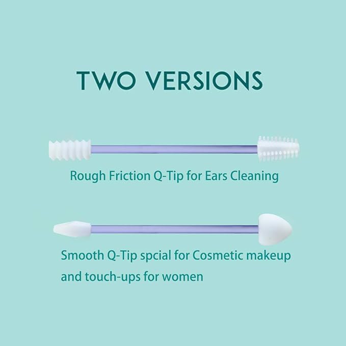 - ✅QUALIFIED MATRIAL--This is an design upgraded Latest Third Generation Reusable Cotton Swab, both end of swab were designed non-detachable, products shape has been changed which is more suitable for ears cleaning and makeup, the tips wouldn't popped off during using, all materials were 100% safe and non-toxic, tip is super soft and flexible which is made of medical silicone. Product including: 2pcs (2 in 1 pack special for Ladies).