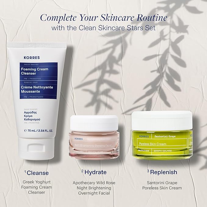 - KORRES: Korres is a clean ingredient-first Greek skincare brand. Our mission is to create beauty formulations in harmony with the planet and your skinβdelivering healthy, transformative results without the harsh chemicals. Our Greek Yoghurt Foaming Cream Cleanser is dermatologically tested, vegetarian friendly, silicone free, cruelty free, and housed in recyclable packaging.