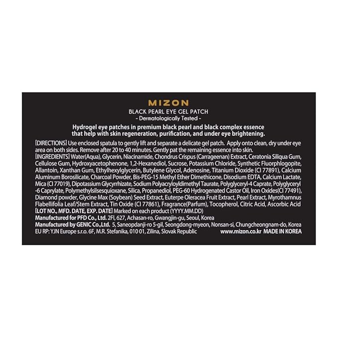 MIZON Pearl Eye Gel Patch Masks, Eye Treatment Mask Reduces Wrinkles and Puffiness, Dark Circles treatment, Hydrogel Eye Patches (Black Pearl)