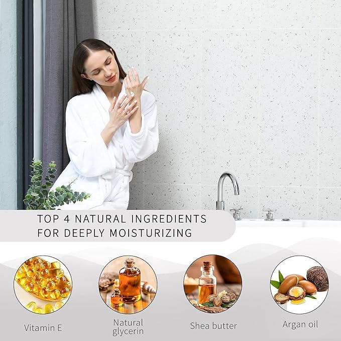 - Organic And Natural Ingredients:Enriched with Shea butter, argan oil, natural glycerin, vitamins, minerals and so much more. These formulas soften the outer layers of the skin and penetrate to the deep inner levels. Non-greasy, only moisturizing