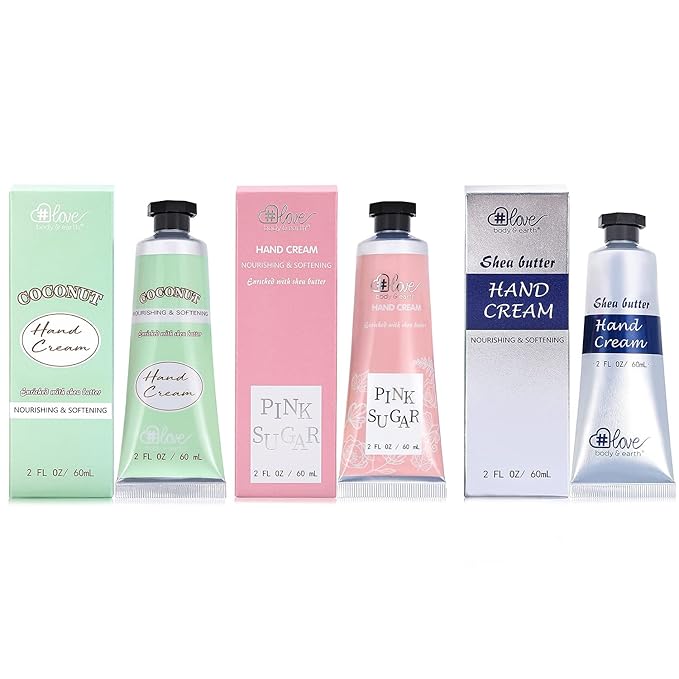 Body & Earth # Love Hand Cream Gift Set, Hand Lotion for Women, Mothers Day Gifts for Mom, Travel Size Hand Lotion Set 3x2.0 oz, Shea Butter Argan Oil Vitamin E Moisturizing Hand Cream for Dry Hands