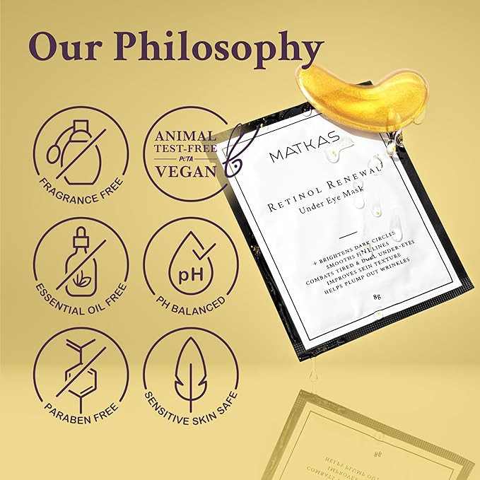 MATKAS Retinol Renewal Gold Under Eye Mask - 20 Pairs, Best Eye Patches for Puffy Eyes and Dark Circles, Collagen Under Eye Patches for Women, Gel Under Eye Masks for Dark Circles and Puffiness