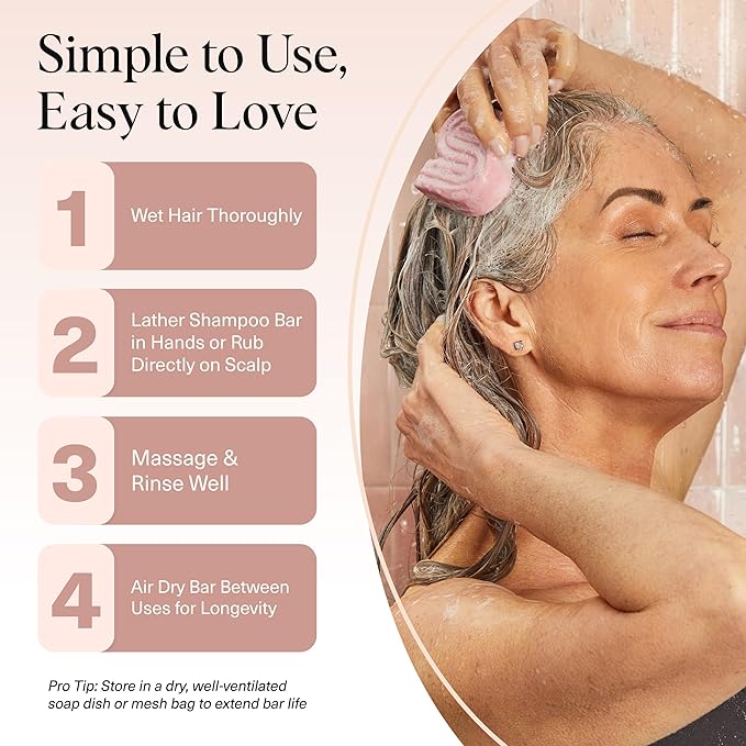 - SALON-QUALITY RESULTS AT HOME – Made in the USA using premium ingredients, this hair shampoo bar delivers a rich lather for deep cleansing and moisture. Simply wet your hair, lather in your hands or apply directly to the scalp, massage, and rinse. Pro tip: Pair with our Beauty Bar Bag for best results.