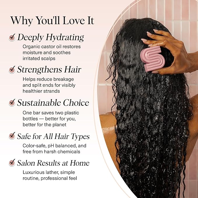 - DEEPLY NOURISHING WITH ORGANIC CASTOR OIL – This castor oil shampoo bar is crafted with organic castor oil, known for its ability to hydrate and soothe the scalp, reduce irritation, and help detoxify with natural antimicrobial properties. Ideal for restoring balance to dull, dry hair while promoting a healthy scalp environment.
