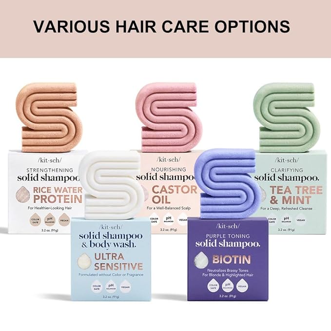- MADE IN THE USA – ETHICAL, EFFECTIVE HAIR CARE - Proudly made in the USA, this cruelty-free, Leaping Bunny Certified shampoo bar delivers salon-quality results with clean, conscious ingredients. For optimal hydration and scalp balance, pair it with the Kitsch Tea Tree & Mint Conditioner Bar—a perfect combo for healthier-looking hair and a refreshed scalp.