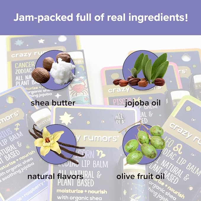 Crazy Rumors Virgo Zodiac All Natural, Plant Based Lip Balm to Moisturize and Nourish your Lips - Earth Blend (Sweet Vanilla, Fragrant Rose and Plum)