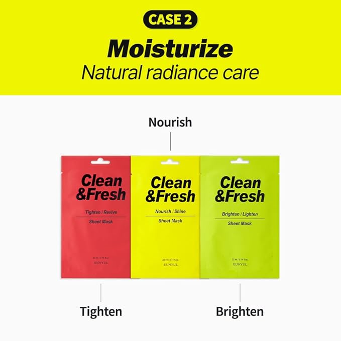 EUNYUL [PACK OF 10] Clean & Fresh Sheet Mask 22 ml / 0.74 fl.oz. 10 types Korean Sheet Mask Bundle Pack For All Skin Type Face Mask Pack