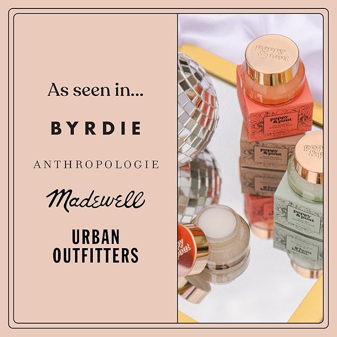 Poppy & Pout Natural Lip Scrub, Moisturizing Sugar Scrub for Dry Lips, Lip Scrubber Exfoliator with Essential Oils Smooths and Hydrates Lips, In Recyclable Glass Jars, Cruelty Free - Pomegranate Peach