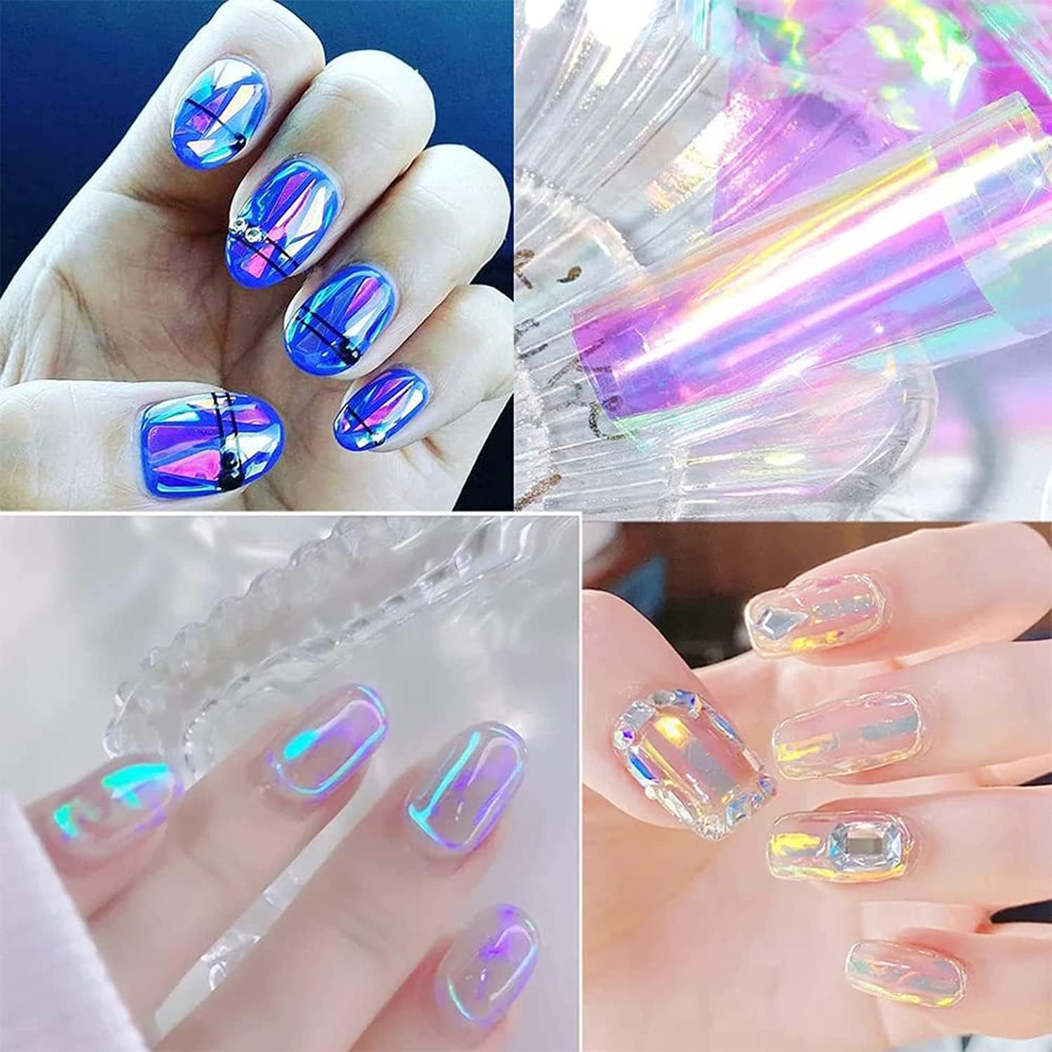 - 💝【Package includes】You will get 8 sheet of glass paper nail art stickers, The segments of the foil reflect light like facets on gemstone; different colors appear at different angles under lights. Emulate the look of shattered glass effect design on your nails, enough quantity for you to choose colors you love and make them into different shapes to create your own nail art works.