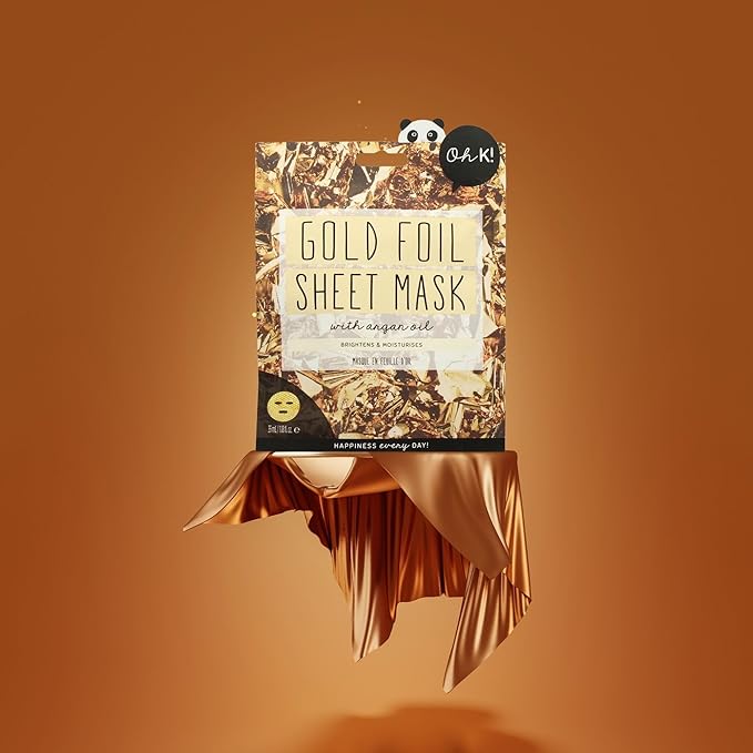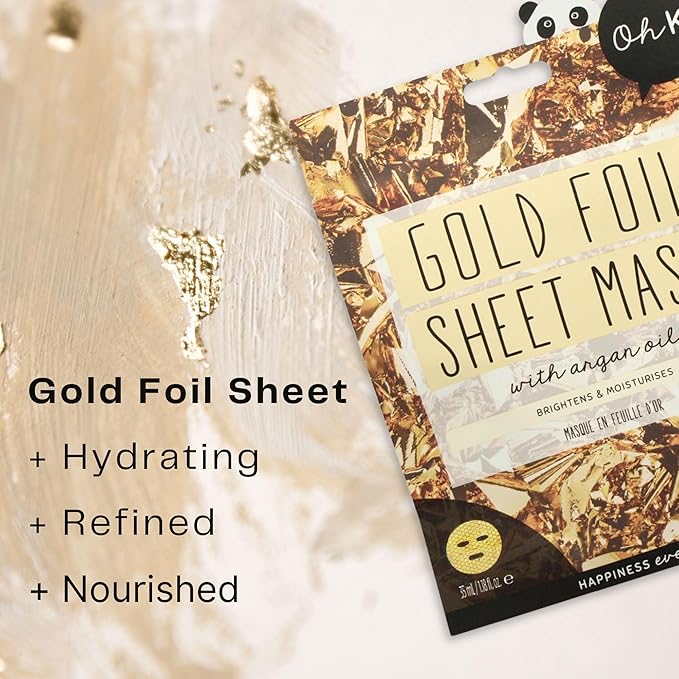 Oh K! Sheet Mask - Gold Foil - Moisturizing Face Mask - Hydrating Face Sheets - Infused with Argan Oil - Plant-Based Fiber - Korean Skincare - 1 Pc