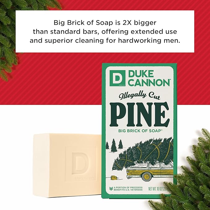 Duke Cannon Supply Co. Big Brick of Soap Bar for Men Holiday Edition - Illegally Cut Pine (Fresh Split Pine Scent), 10 oz. (3 Pack)