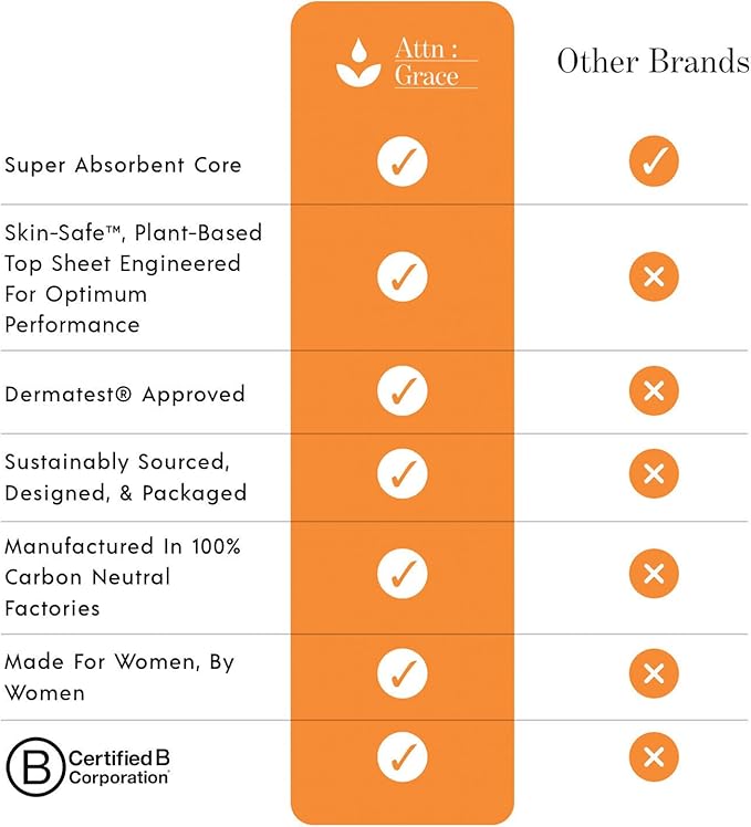 - Designed by Women, for Women: Attn: Grace is dedicated to supporting women managing bladder leaks, whatever your stage of life, with thoughtfully crafted personal care. Whether you need extra-heavy overnight protection, postpartum protection, discreet bladder leak pads, or breathable incontinence solutions, our plant-based products provide comfort, confidence, and care tailored to your needs.
