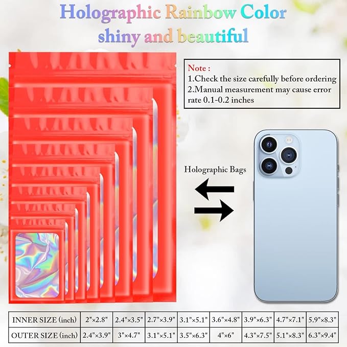 - PACKAGE INCLUDES: You will receive 100 pieces of holographic packaging bags, enough quantity for your daily use and replacement. You can send holographic bags to family and friend. Mylar bags can also serve as good decoration bag.