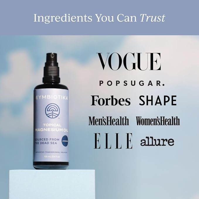 - NATURAL SUPPLEMENT: Cymbiotika strives to create ingredients you can trust. We combine scientific innovation with traditional Eastern medicine to design formulas that synergize with the body. Our magnesium oil spray utilizes the most advanced absorption technology and is vegan, gluten free, GMO-free, and made with ZERO chemicals, animal products, alcohols, additives, and preservatives.