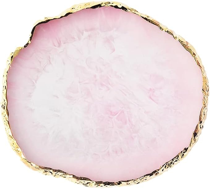 Resin Nail Art Palette, Nail Art Painting Mixed Color Palette Gold Edge Nail Gel Color Makeup Display Board (2#Pink)