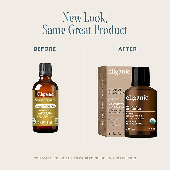 Cliganic Organic Cedarwood Essential Oil - 100% Pure Natural for Aromatherapy Diffuser | Non-GMO Verified (Packaging May Vary)