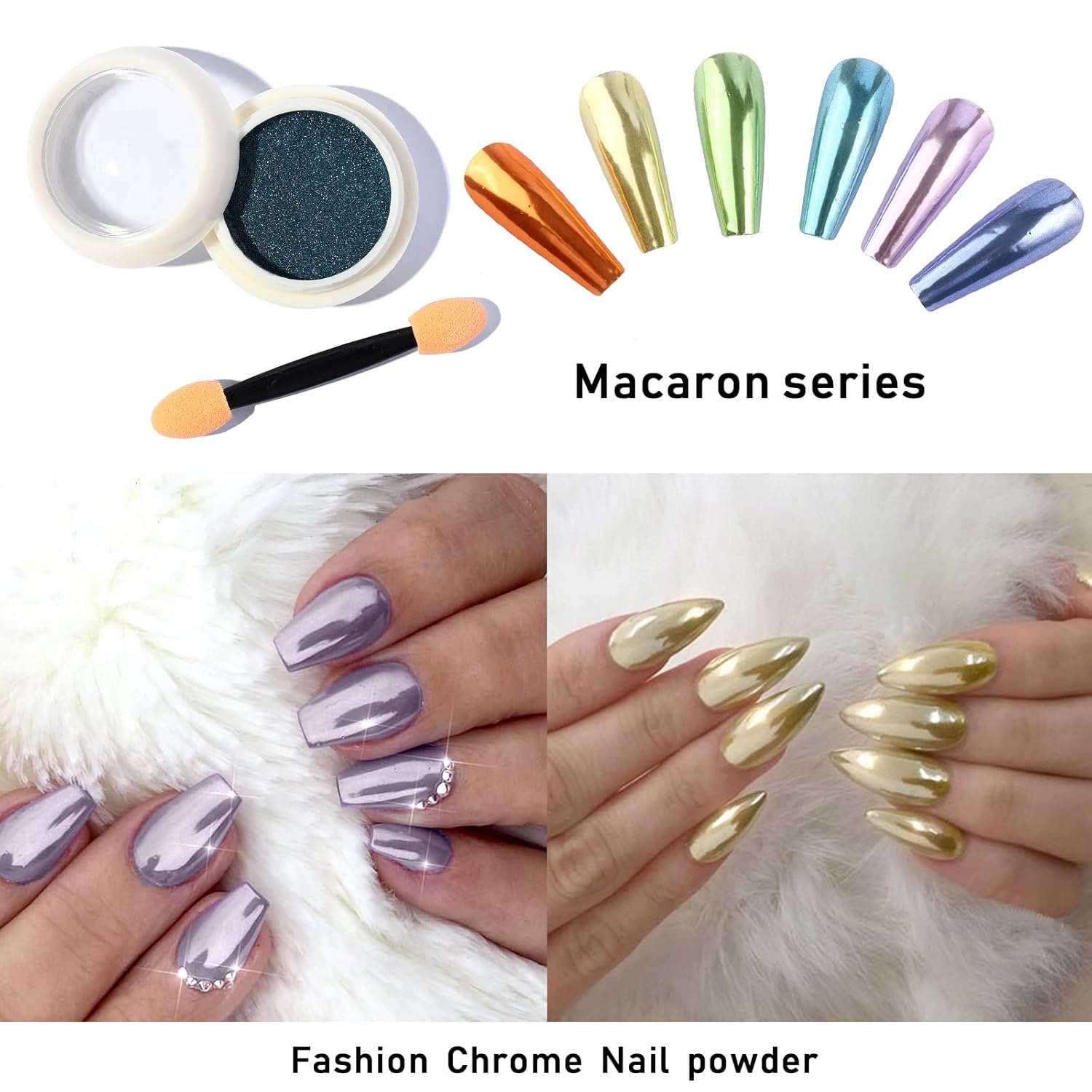 - đź’•High-Quality Chrome Nail Powder: Our super mirror chrome nail Powder is made of a high-quality and fine powder, easy to color, and durable. Different colors of gel polish will produce different effects.