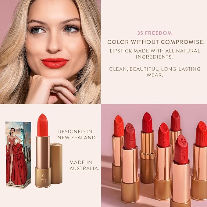 - CLEAN, BEAUTIFUL, LONG LASTING WEAR: With peachy undertones and a uniquely bright flair, Freedom embodies joie de vivre with every application. This beautiful royal red is here to enhance your natural beauty and inspire confidence with its deep and rich, smooth formula. For adding the perfect touch of luminous radiance to your face, look no further than Freedom.