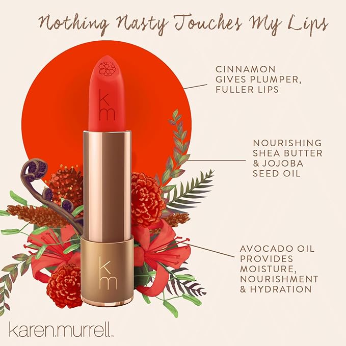 Karen Murrell - Natural Lip Stick - Lipstick 35 Freedom - Red Lipstick - Matte Finish, 100% Natural Ingredients, Moisturizes & Hydrates Lips - Paraben & Cruelty Free