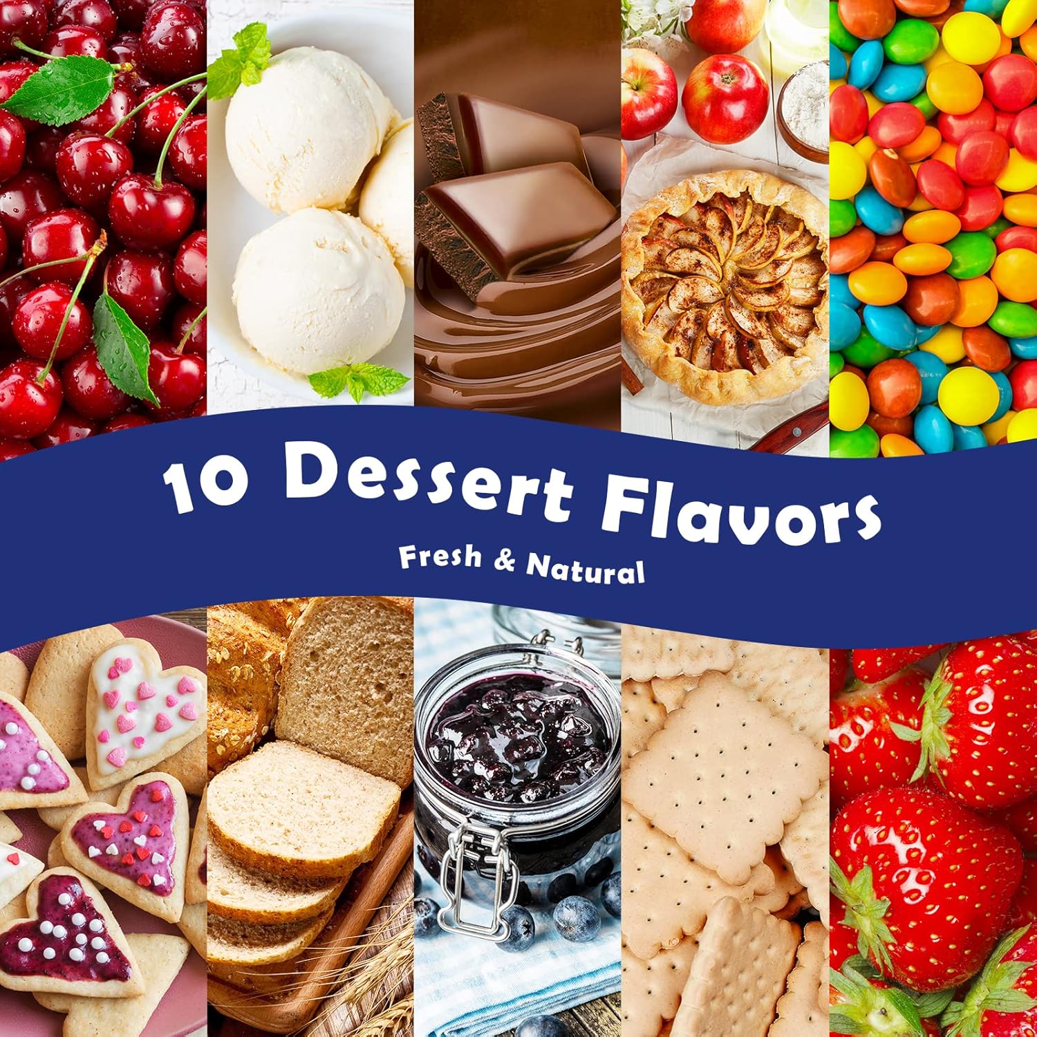 - Delicious 10 Dessert Fragrance Oils (5ML Pack); Each our scented oils bursts a warm and yummy fragrance of homemade desserts - creamy vanilla, apple cinnamon, strawberry, sugar cookies, rainbow candy, chocolate, cherry, blueberry sauce, milk biscuits, oatmeal bread, smell like everything delicious from kitchen