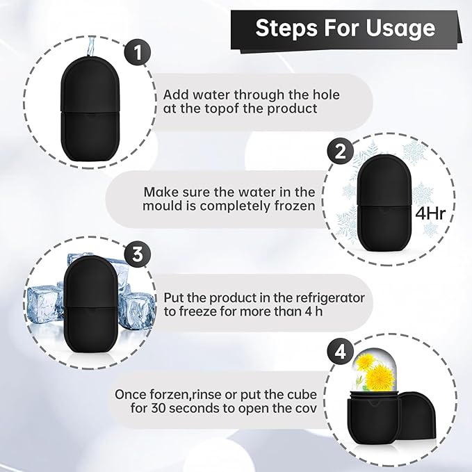 - đăEasy to UseăSmall and light design, easy to use. the ergonomic hand design is easy to grasp, and the ice roller head can slide on the skin, refreshing and calming the skin. It helps improve the skin by conditioning, shaping and lifting, while at the same time creating a healthy glow for the skin by stimulating blood circulation. Frozen over 4 hours, apply the ice to your skin in 30 second intervals in circular motions.