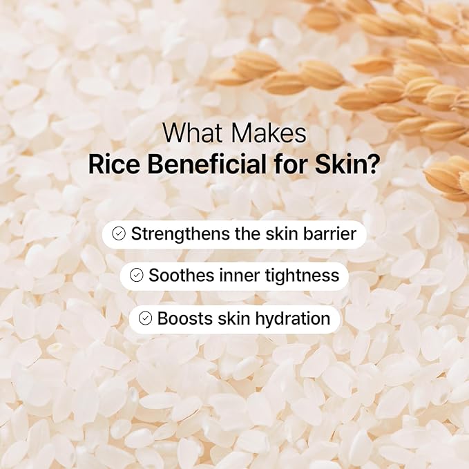 - Infused with 82% rice bran water, rich in vitamins B and E, perfect for soothing tight skin and creating a healthy glow.