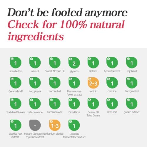 - ๐ฟ Natural Ingredients Tinted with natural pigments derived from pomegranate, carrot, and other botanical sources. Olive oil, jojoba oil, shea butter, and other plant-based oils form a protective moisture barrier over the lips.