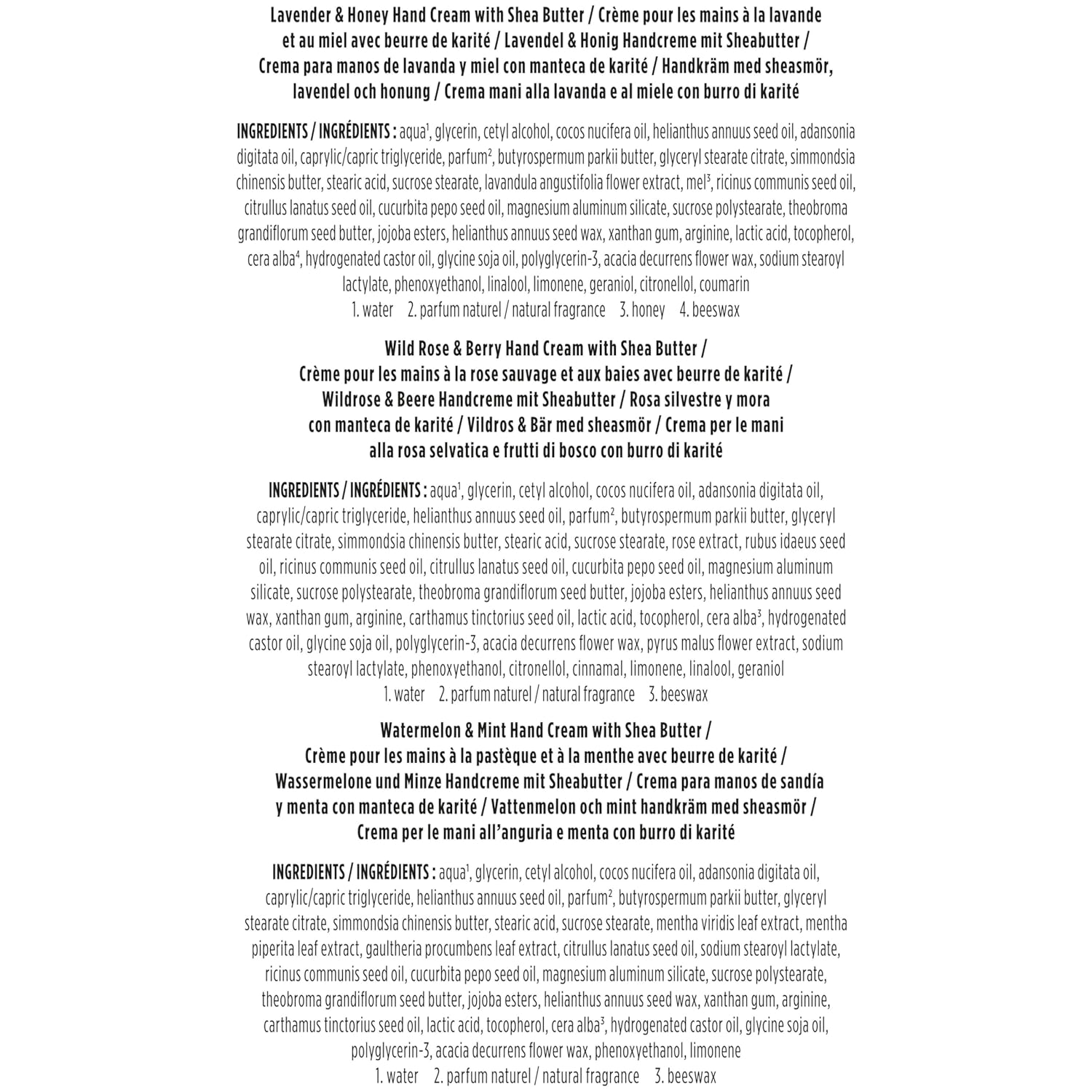 - THREE DELIGHTFUL SCENTS: Hand cream set includes three gorgeous fragrancesβLavender and Honey, Wild Rose and Berry, and Watermelon and Mintβto indulge the sense while softening rough, dry hands