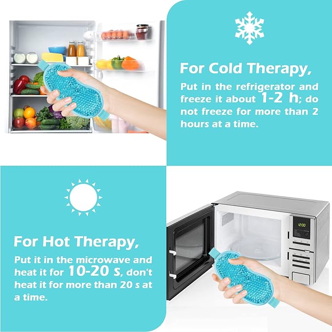 - ๐Hot&Cold Therapy: Using the principle of physical therapy, wear the gel eye mask after cooling or heating for 8-15min to help you relieve fatigue and stress. For cold therapy,place it in the refrigerator for about 1-2h; for heat therapy, place it in a microwave oven and heat it for 10-20s.