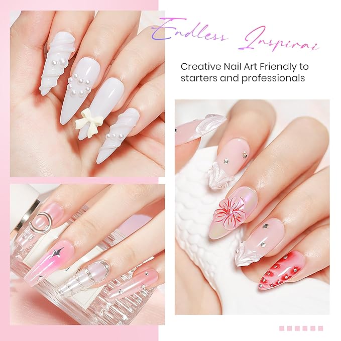 - Easy to Apply and Beginner Friendly: The 3D nail gel is non-flowing formula and non-sticky texture, which makes it easy to use. Easy application, quick nail extension, friendly for nail beginners to create stunning nails at home, for professional manicurists to do nail art at the salon. Can take some extension gel to use by fingers, dual nail pen or any types of stick. A money-saving builder gel for daily nail art.