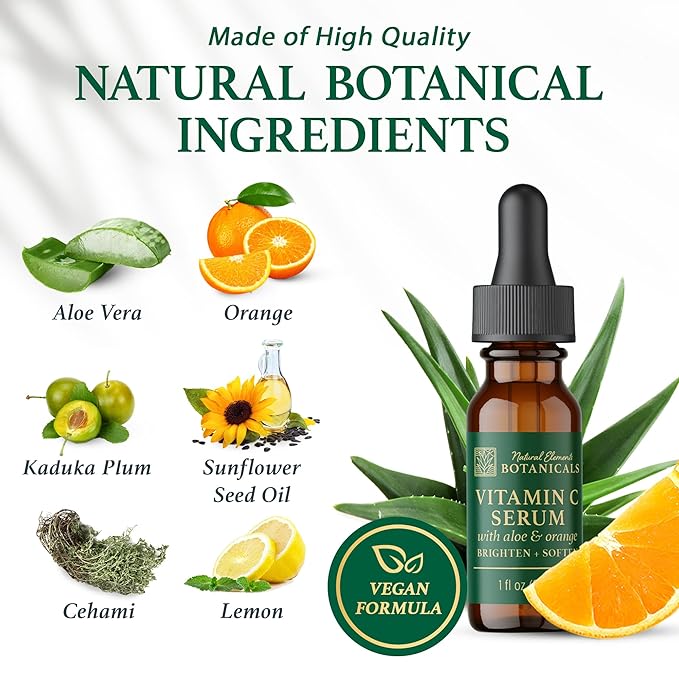 - Intense Nourishment - Show your skin some love by applying vitamin c and e serum powered by plant-based ingredients. Plump up your skin and watch it transform from dull to its healthy glow with the nourishing blend of aloe vera, kakadu plum, cehami, orange, lemon, sunflower seed oil.