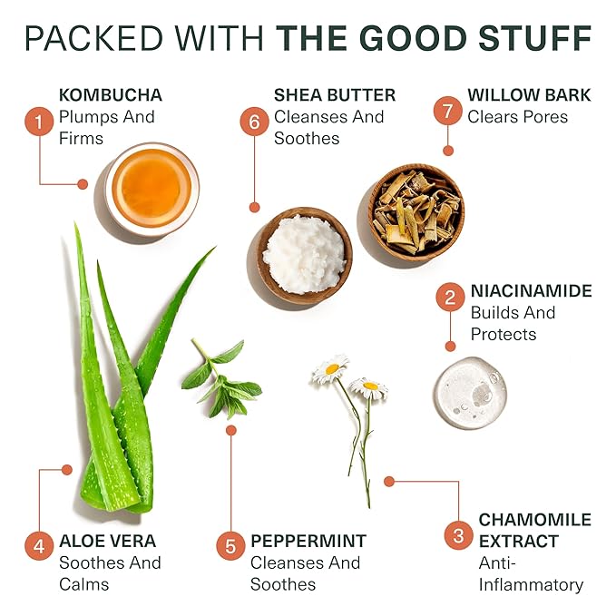 Botanic Tree Kombucha & Glycolic Acid Exfoliating Face Wash for Aging Skin - Face Cleanser for Women - Kombucha Lipofilling Effects and Skin Healthy Probiotics and Antioxidants
