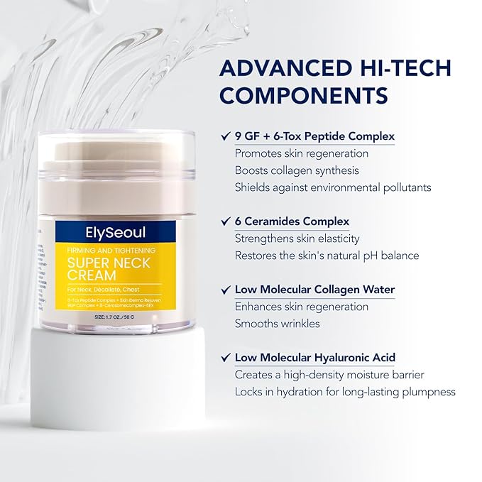 - Targets Aging Neck Concerns: Effectively combats sagging skin, crepey texture, fine lines, wrinkles, dryness, and uneven tone, promoting a youthful and firm neck and décolleté.