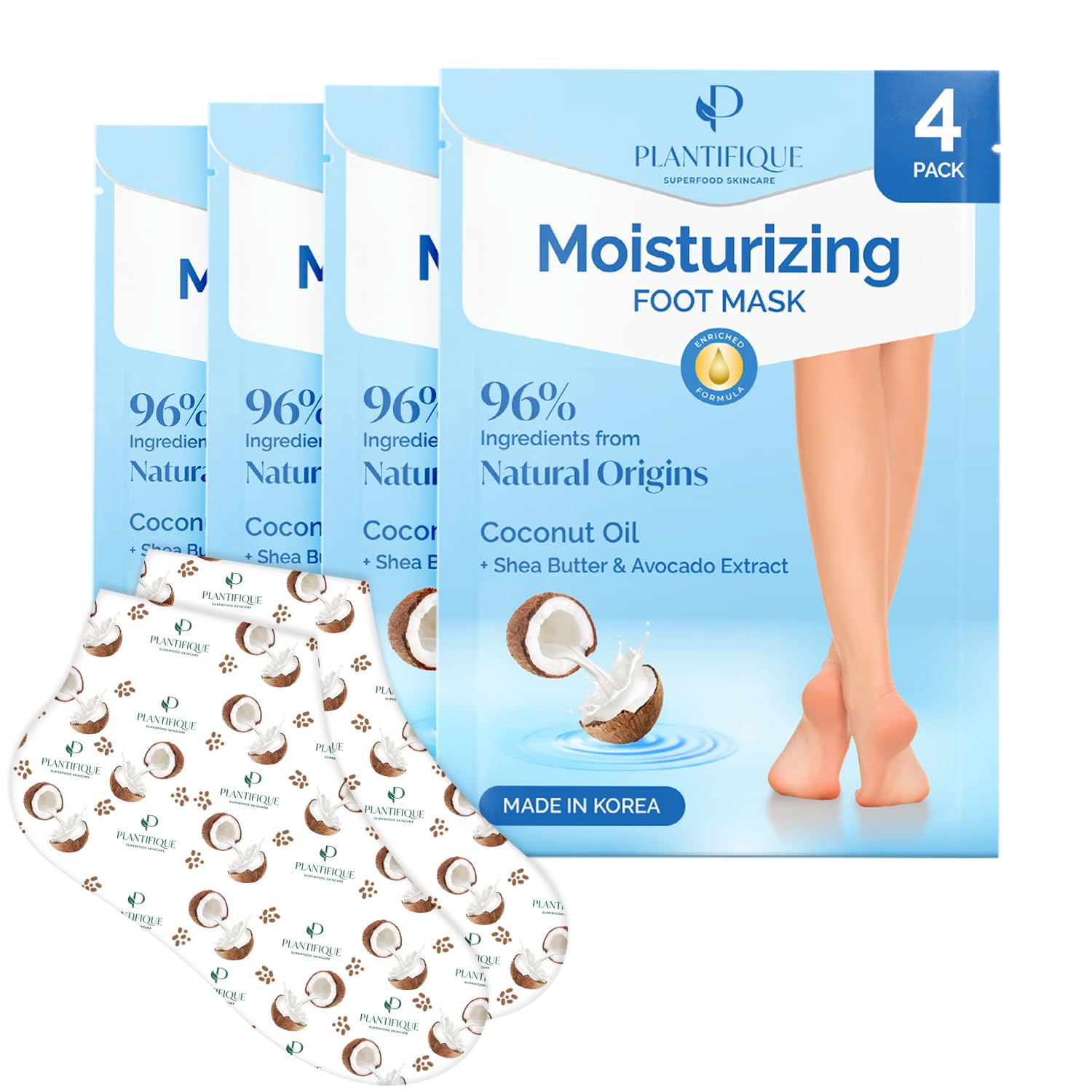PLANTIFIQUE Korean Foot Mask with Shea Butter 4 Pairs box for Dry & Cracked Feet | Hydrating Socks for Soft Heels | Intense Moisturizing and Repairing Dry Rough Skin | Foot Spa | Happy Feet Mask