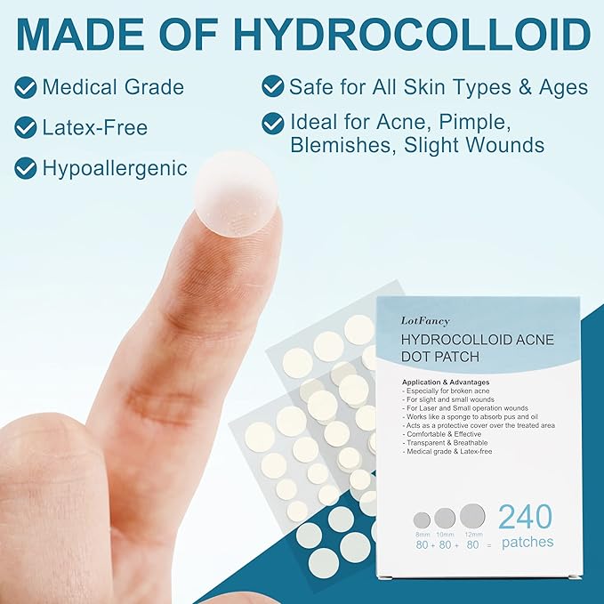 - SAFE FOR ALL SKIN TYPES: No fragrances, non-irritant & latex free; Made of hydrocolloid; Hypoallergenic spot patches work for all ages & all skin types: oily, normal, dry and combination skin; For use on the face as well as body acne